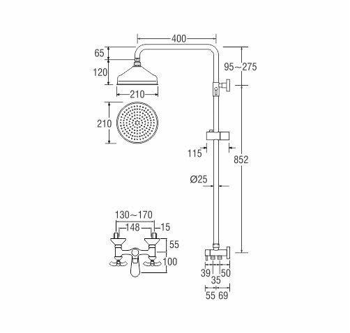 - Adjustable rain shower column heigh: 95mm-275mm